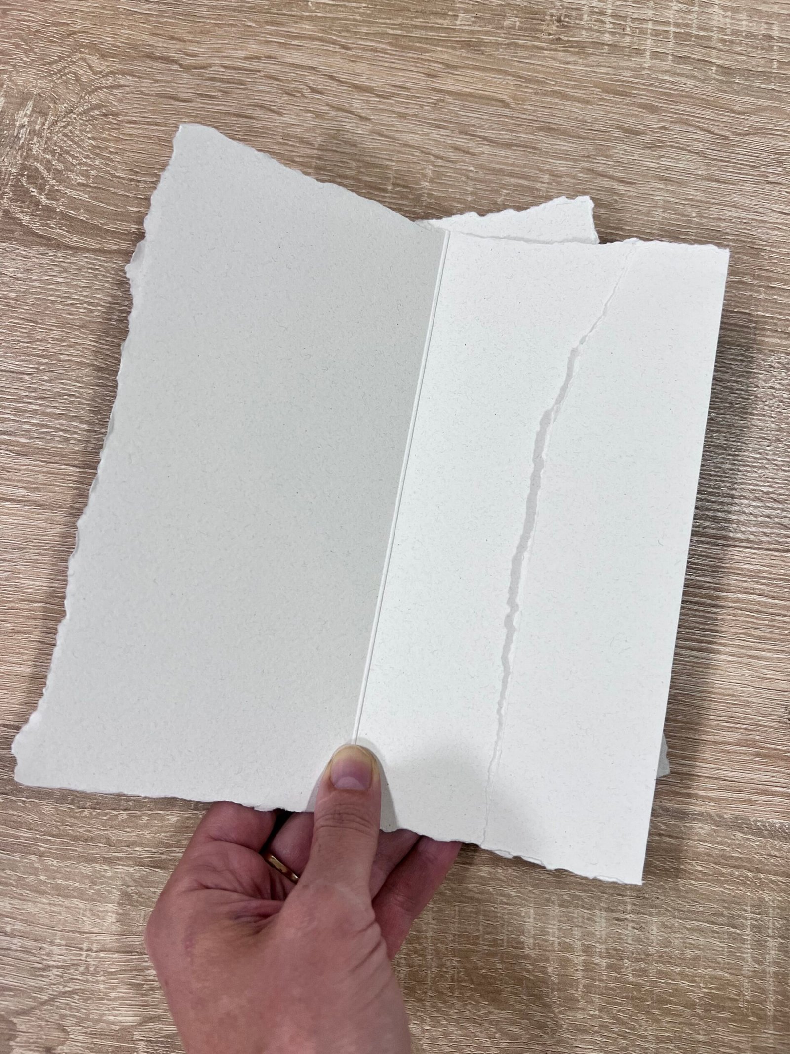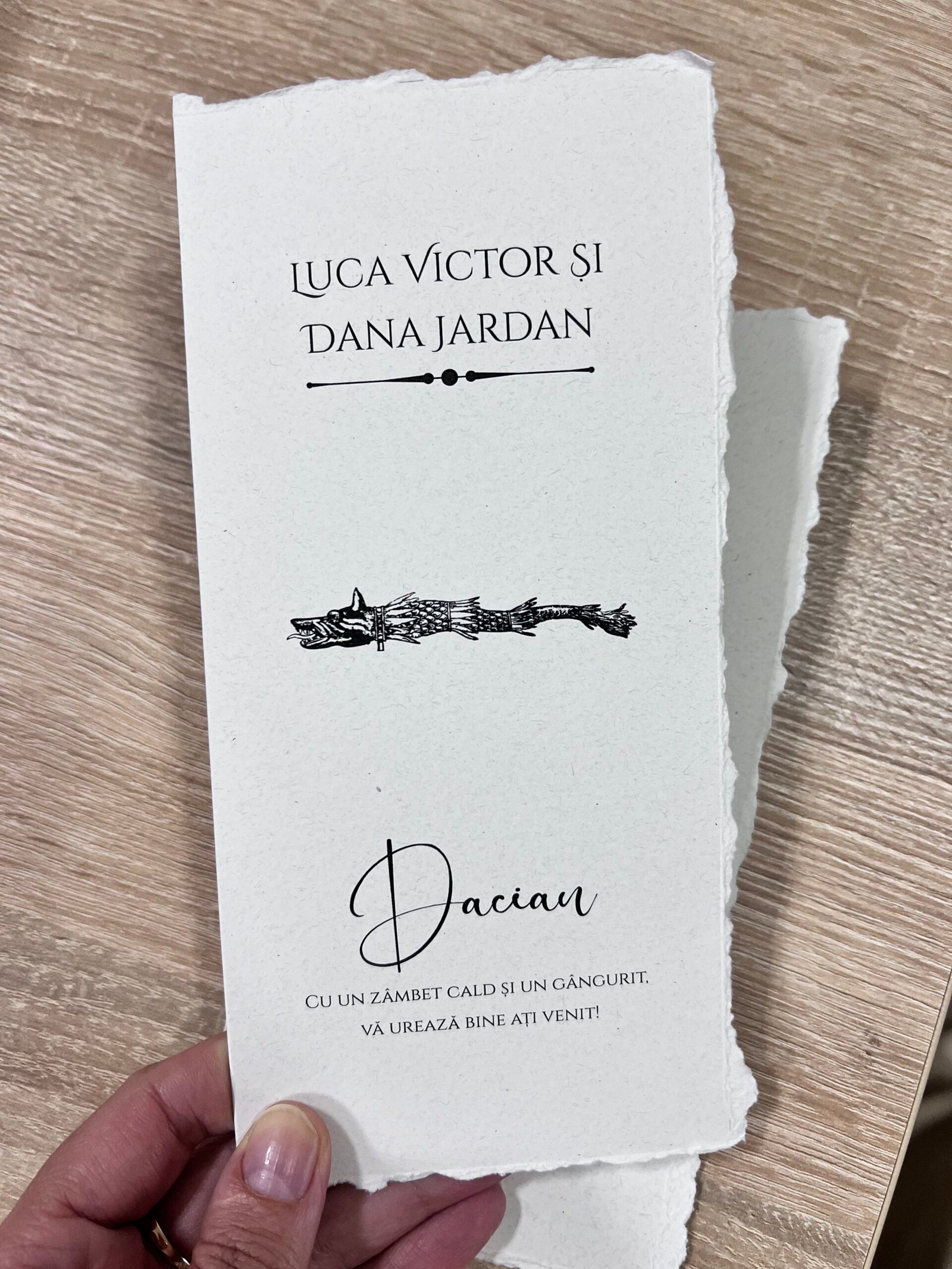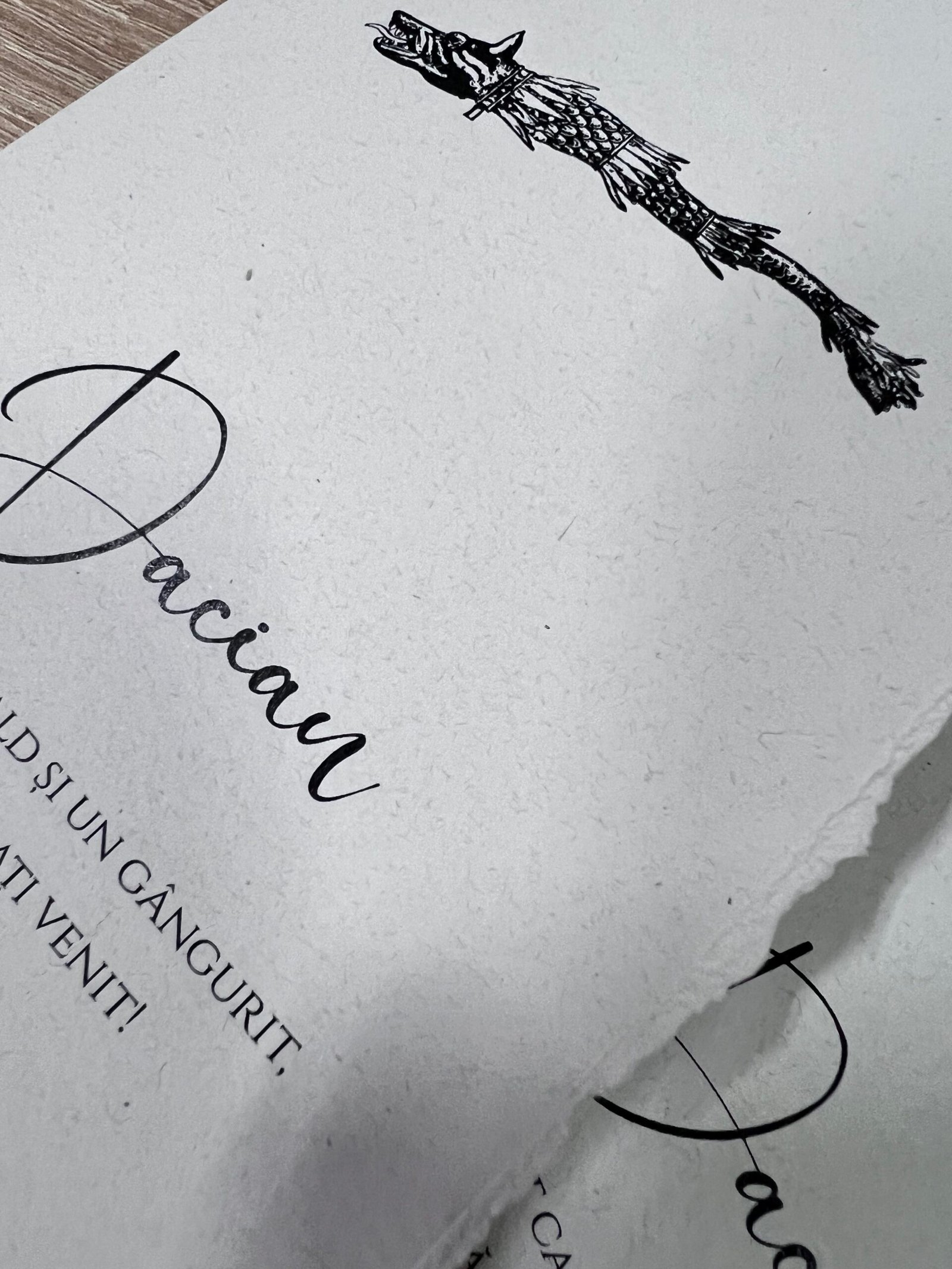 Hârtia texturată și marginile rupte manual oferă un aspect natural.